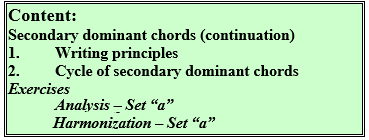 Be aware that, except for a few exceptions, the secondary dominant chords are normally chromatic chords. Therefore, they have at least one note that does not belong to the tonality.
